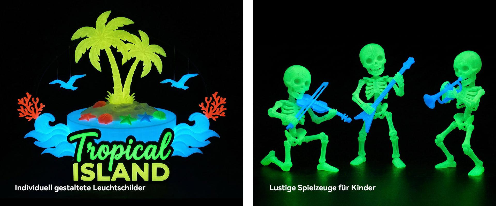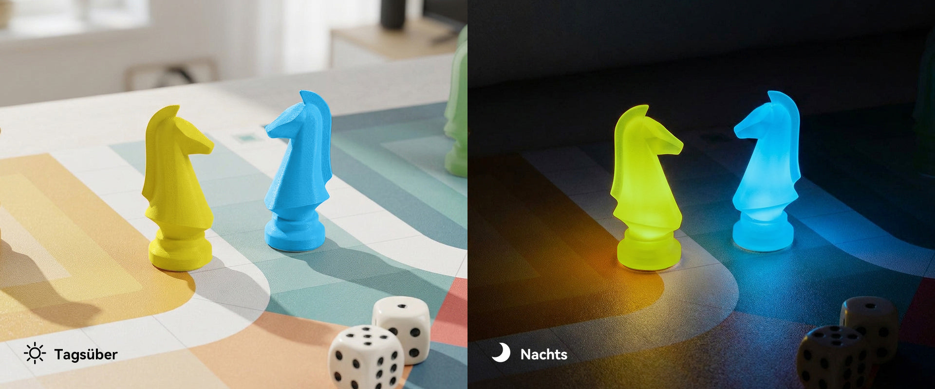 Hervorragende Leuchtkraft im Dunkeln: Effekt Absorbiertes Licht kann nachts durch PETG (mit 10 % Leuchtpulveranteil) leuchten, wobei der Leuchteffekt dem von leuchtendem PLA ähnelt. Nachts oder in einer dunkleren Umgebung ist die Leuchtdauer etwa 10 Minuten lang sichtbar.