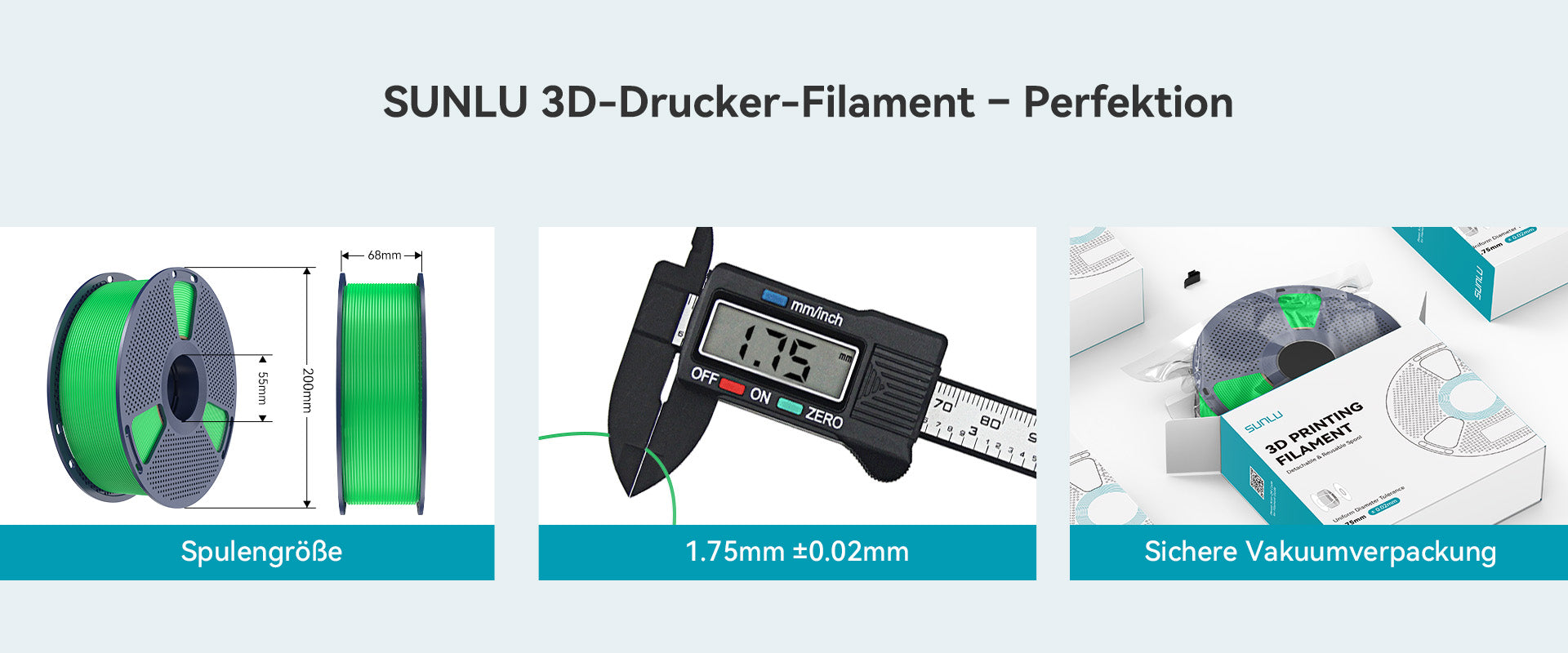 SUNLU 3D-Drucker-Filament mit einer Maßgenauigkeit von +/- 0,02 mm. SUNLU-Filament ist aufgrund des geringen Durchmesserfehlers breit kompatibel. Geringe Schrumpfung und gleichmäßiger Durchmesser (±0,02 mm) sorgen für einen reibungslosen Vorschub und zuverlässige Druckergebnisse. Funktioniert perfekt mit den meisten FDM-3D-Druckern (Bambu Lab, Creality, Prusa, Anycubic usw.).