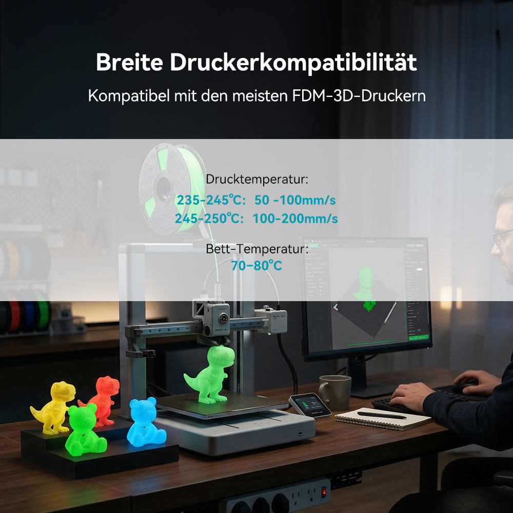 Nahtlose Oberfläche mit ultrafeinen Details: Dieses Filament wurde entwickelt, um Schichtlinien zu minimieren und Ihren Kreationen direkt nach dem Druck ein raffiniertes, professionelles Aussehen zu verleihen. Die schimmernde Perlmuttoptik unterstreicht die glatte Oberfläche und lässt jede Kurve, Kante und Textur mit Eleganz und Präzision hervorstechen. Perfekt für Kreative, die sowohl Wert auf Schönheit als auch auf Qualität legen.