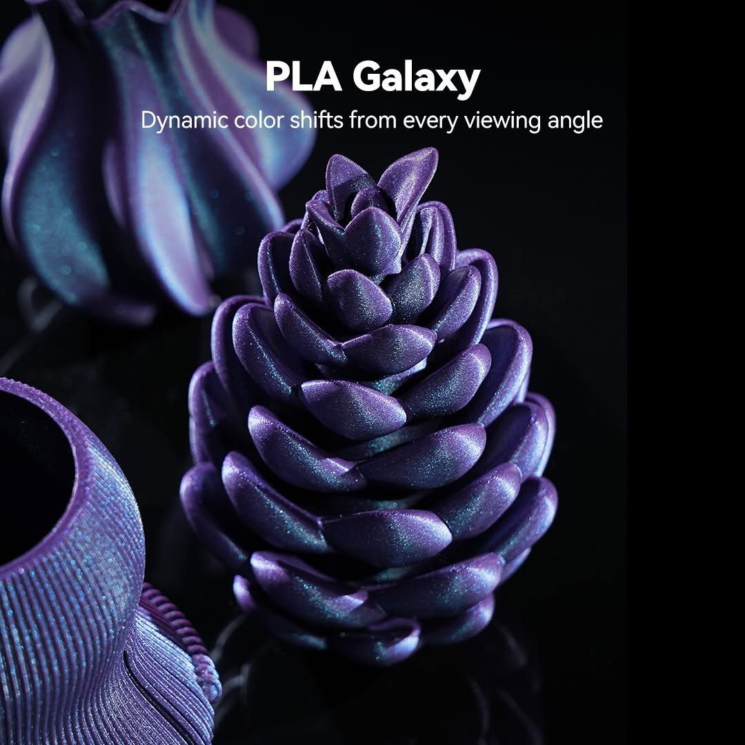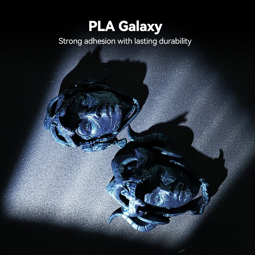 Unendliche kreative Anwendungsmöglichkeiten: Von dekorativen Ornamenten und Schmuckstücken bis hin zu Cosplay-Requisiten, Modeaccessoires und künstlerischen Skulpturen – PLA Galaxy eröffnet unbegrenzte Möglichkeiten für kreative Projekte. Dank seiner auffälligen Oberfläche eignet es sich ideal für Ausstellungsstücke, Geschenke oder alles, was auffallen soll. Egal, ob Sie Hobbybastler oder Profi sind, dieses Filament hebt Ihre Designs auf die nächste Stufe.