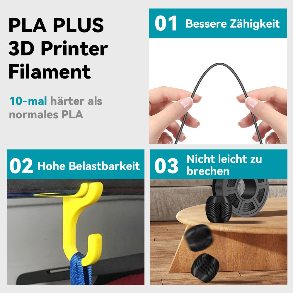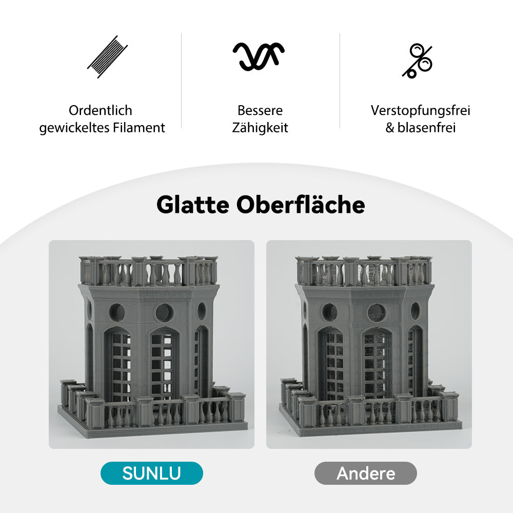 PLA-Material ist die perfekte Wahl für 3D-Druck-Enthusiasten! SUNLU PLA-Filament ist zuverlässig, vielseitig und einfach zu verwenden. Keine Verstopfungen, Blasen oder Verwicklungen – die hervorragende Schichthaftung sorgt jedes Mal für hochwertige Druckergebnisse. Ideal für Einsteiger und erfahrene Anwender.