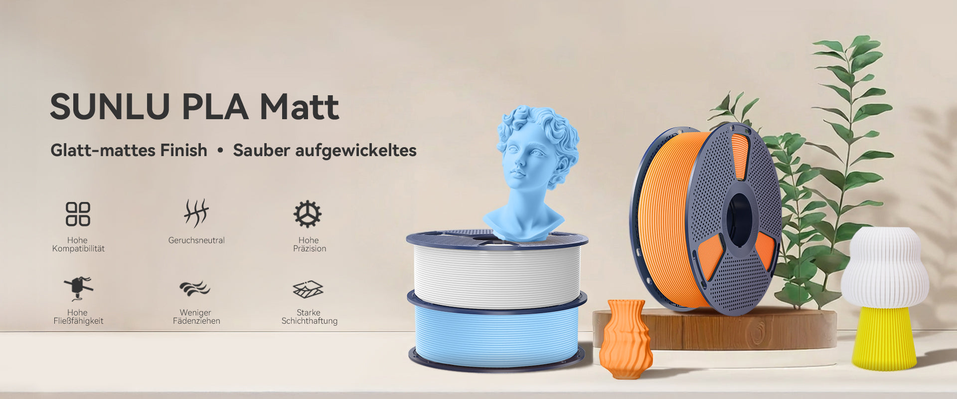 • PLA Matte Filament mit hoher Präzision (±0,02 mm Toleranz)