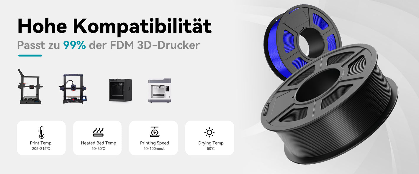 Das SUNLU 3D-Filament ist nicht nur mit allen SUNLU-Produkten (FDM-3D-Drucker, 3D-Druckerzubehör und Filamenttrockner) kompatibel, sondern auch mit nahezu allen FDM-3D-Druckern anderer Marken.