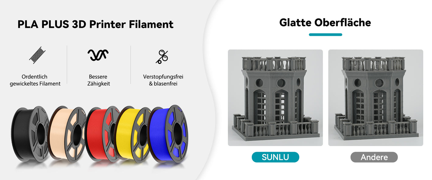 Maßgenauigkeit ±0,02 mm. Dank der geringen Durchmessertoleranz ist das SUNLU-Filament mit fast allen 1,75-mm-FDM-3D-Druckern kompatibel.