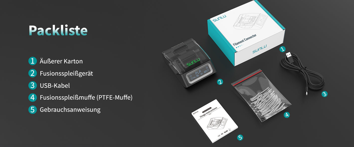 SUNLU Filament Connector FC01, Fusion Splicer, verschweißbar mit 1.75mm PLA, ABS, PETG, PCL, PA und PC Filament