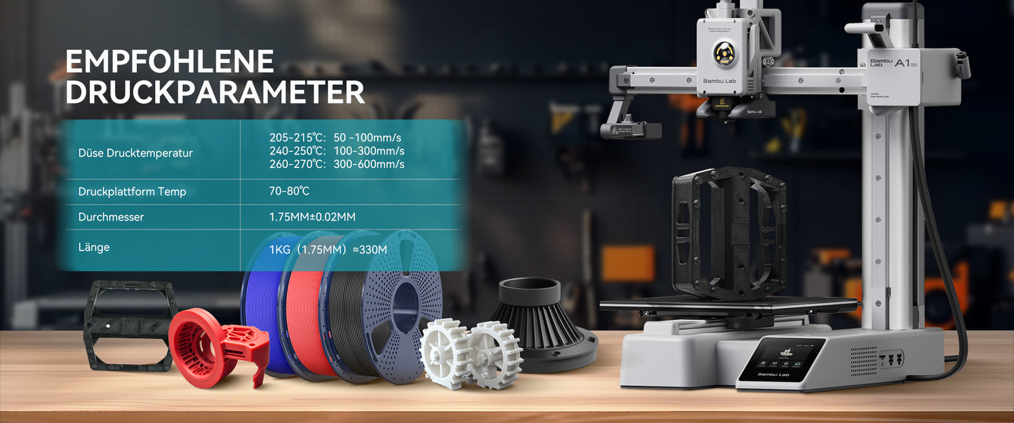 [Haltbarkeit und Festigkeit] PETG wurde entwickelt, um den Anforderungen von Funktionsprototypen und Endverbrauchsteilen gerecht zu werden, und kombiniert Haltbarkeit mit Flexibilität. Es ist widerstandsfähig gegen Stöße, Abnutzung und verschiedene Chemikalien und eignet sich daher ideal für industrielle, mechanische und Heimwerkerprojekte.