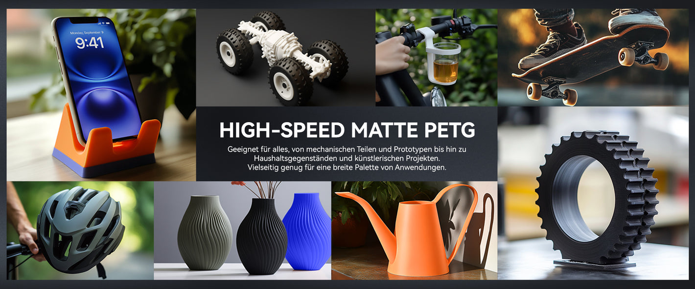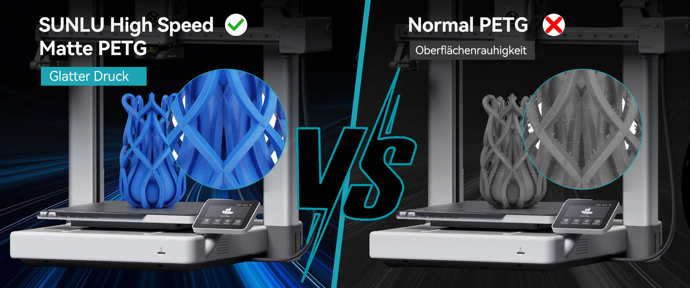 Im Vergleich zu Standard-PETG bietet High-Speed Matte PETG sowohl eine Kompatibilität mit Hochgeschwindigkeitsdruck als auch eine matte Oberflächenoptik.