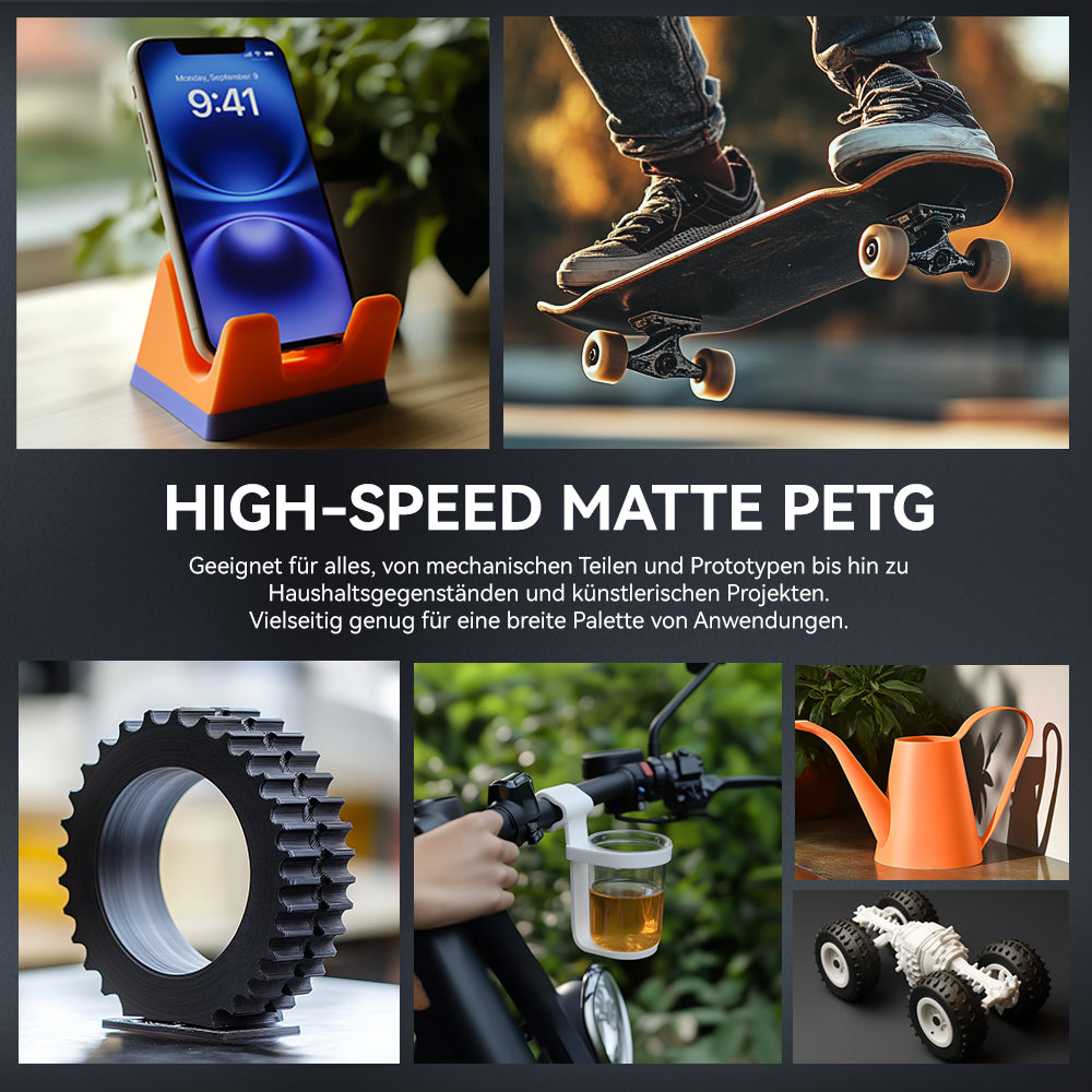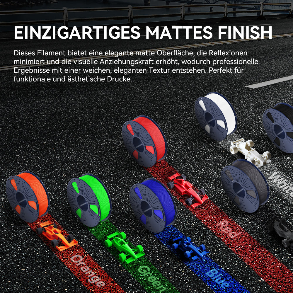 [Einzigartiges mattes Finish] Dieses Filament bietet ein elegantes, mattes Finish, das Reflexionen minimiert und die visuelle Attraktivität steigert und professionelle Ergebnisse mit einer weichen, eleganten Textur erzeugt. Perfekt für funktionale und ästhetische Drucke.