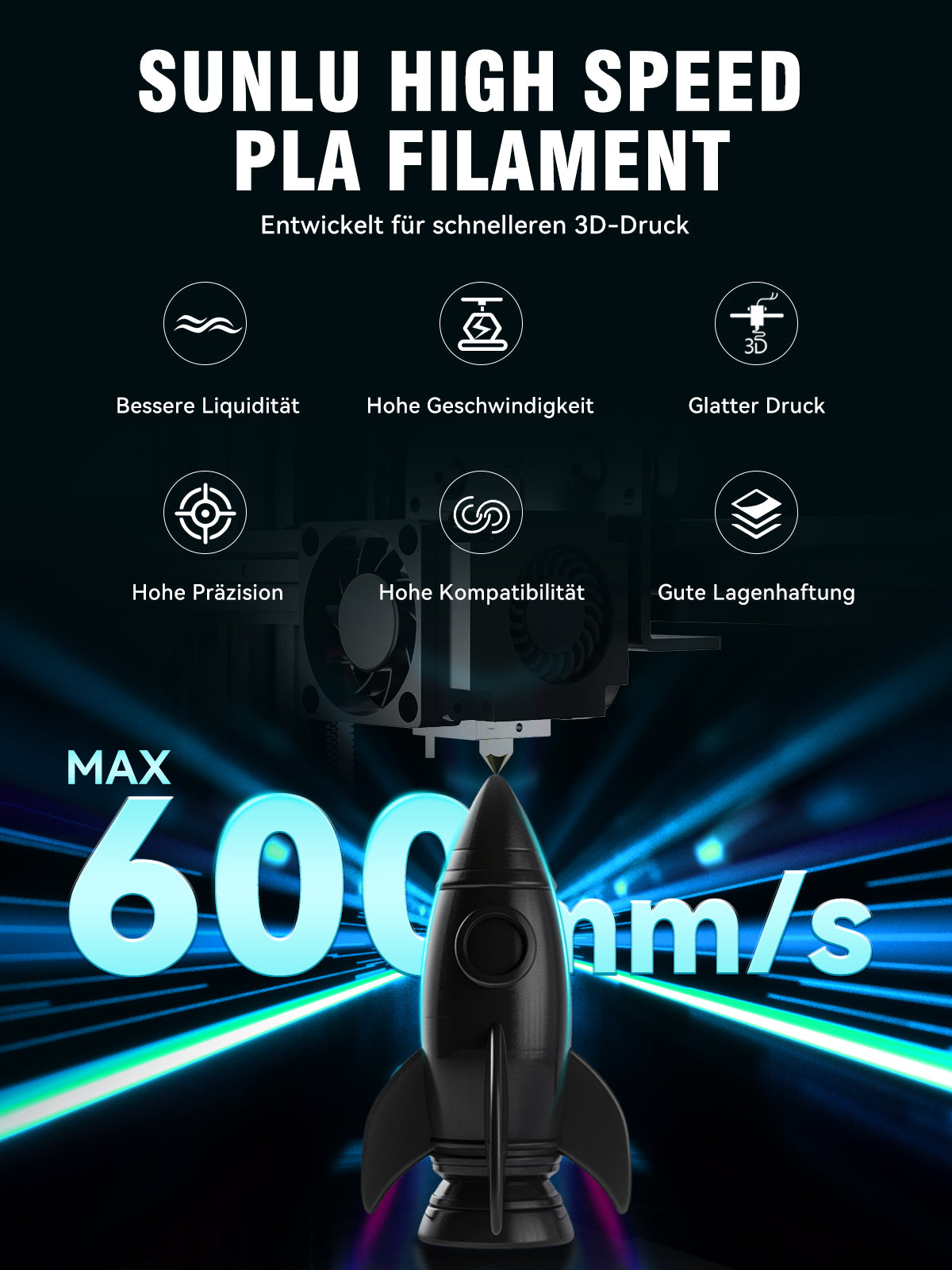 Fangen wir mit dem Fazit an: SUNLU High-Speed PLA Eigenschaften: