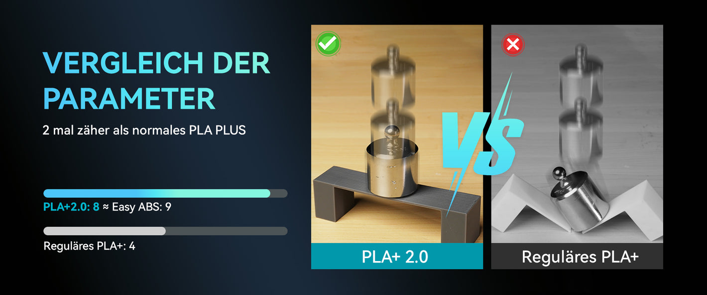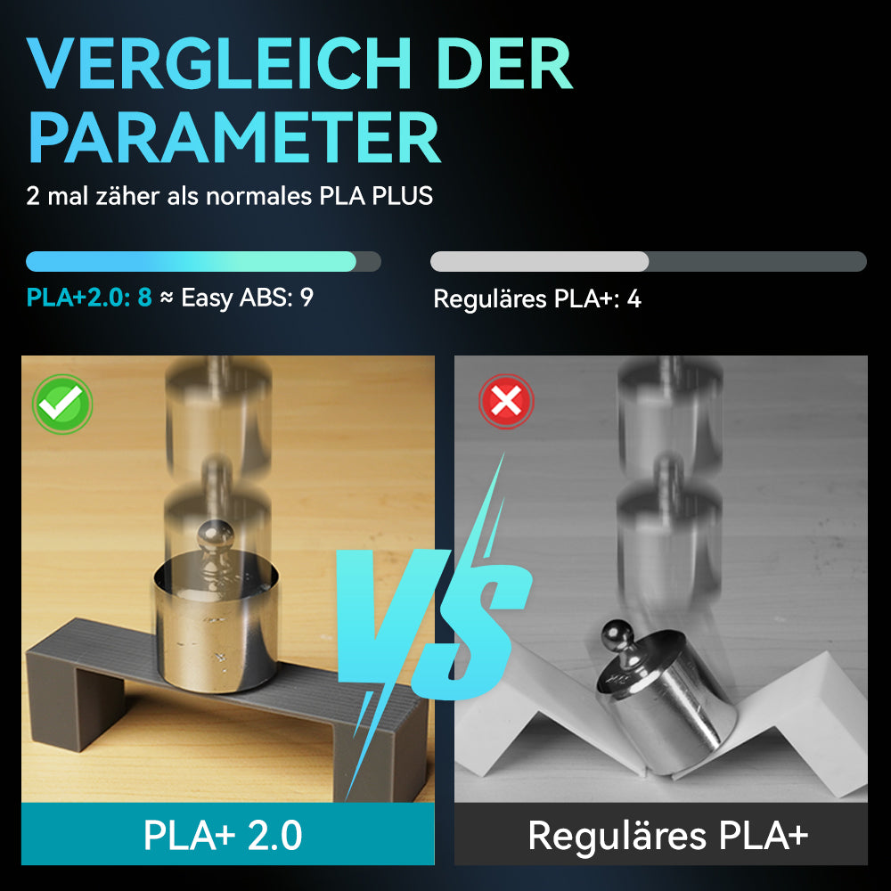 PLA+2.0 bietet eine revolutionäre Schlagfestigkeit und Haltbarkeit, vergleichbar mit Easy ABS, unterstützt Hochgeschwindigkeitsdruck von bis zu 300 mm/s, ist umweltfreundlich, lässt sich leicht nachbearbeiten und gewährleistet eine hervorragende Druckanpassungsfähigkeit bei verschiedenen Anwendungen.