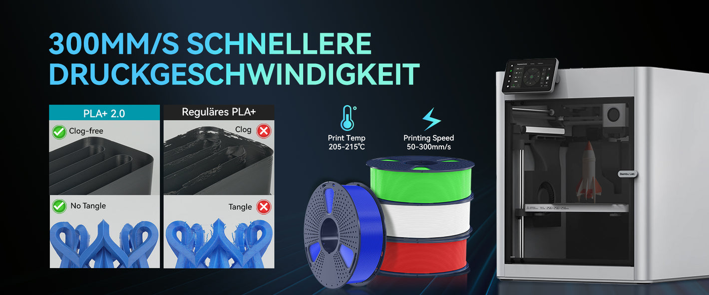 PLA+2.0 unterstützt Hochgeschwindigkeitsdruck mit bis zu 300 mm/s und ermöglicht Ihnen damit eine deutliche Reduzierung der Produktionszeit ohne Kompromisse bei der Qualität. Diese Funktion ist besonders bei Großprojekten und engen Zeitplänen von Vorteil.