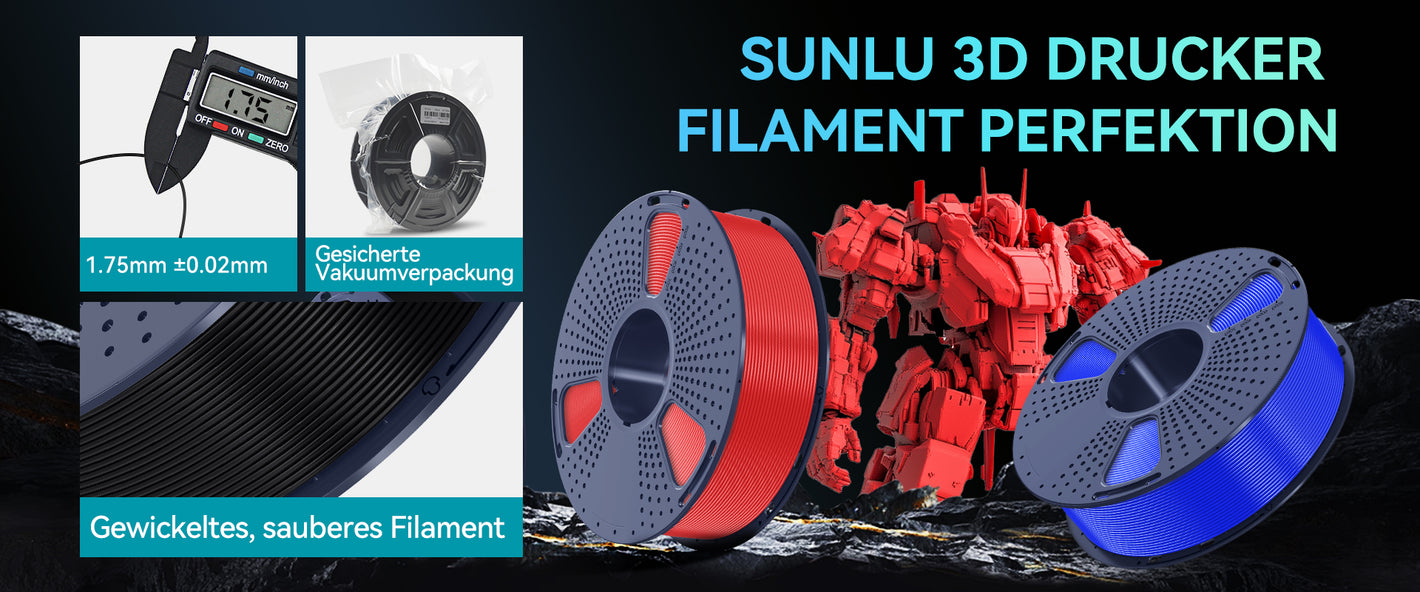 (1,75mm Durchmesser) Maßgenauigkeit +/- 0,02mm. SUNLU Filament hat eine breite Kompatibilität aufgrund des kleinen Durchmessers Fehler, es ist geeignet für fast alle 1,75mm FDM 3D-Drucker.