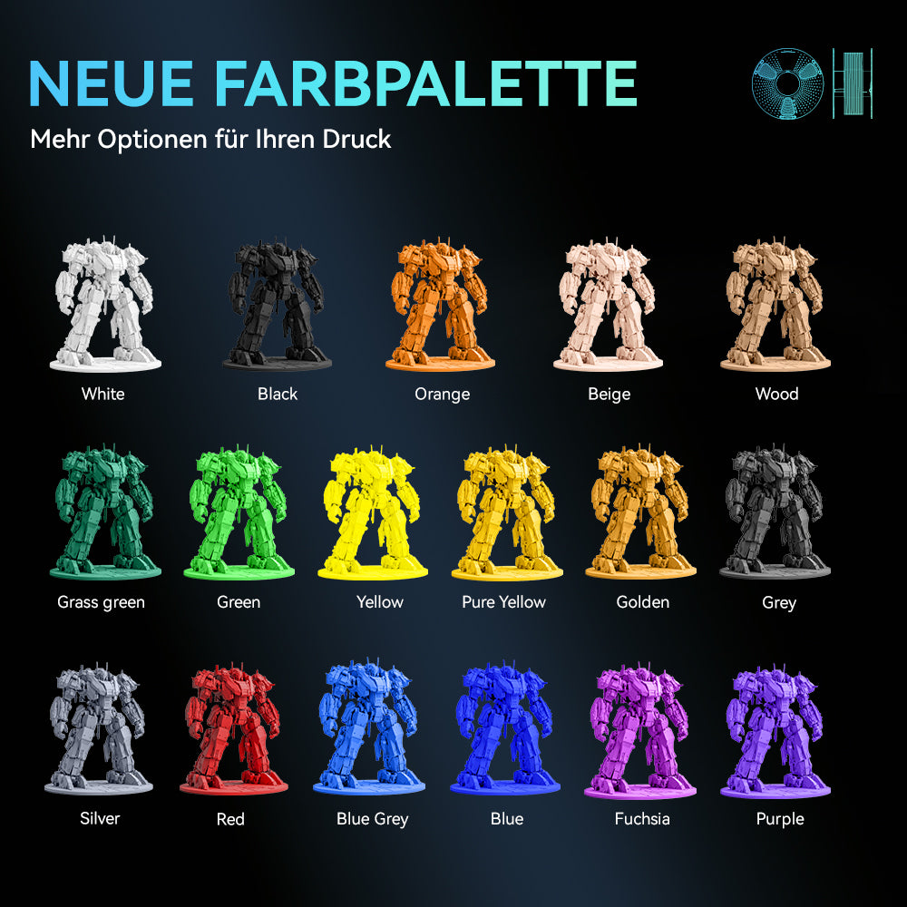 PLA ist das am häufigsten verwendete 3D-Druckmaterial, es ist kostengünstig und anfängerfreundlich mit satten Farben. PLA Meta ist eine verbesserte Version von PLA, mit niedrigerer Drucktemperatur, besserer Zähigkeit und weicheren Farben.
