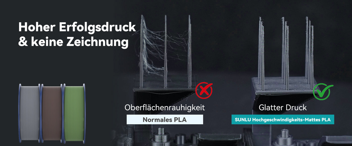 【Hochgeschwindigkeits-Druckleistung】Geeignet für Druckgeschwindigkeiten von 50mm/s-600mm/s. Entwickelt für schnelles Drucken ohne Kompromisse bei der Qualität, ermöglicht Ihnen dieses Hochgeschwindigkeits-Matte-Pla-Filament, mehr in weniger Zeit zu produzieren. Erzielen Sie glattere, schnellere Drucke mit Präzision und reduzierten Schichtlinien.
