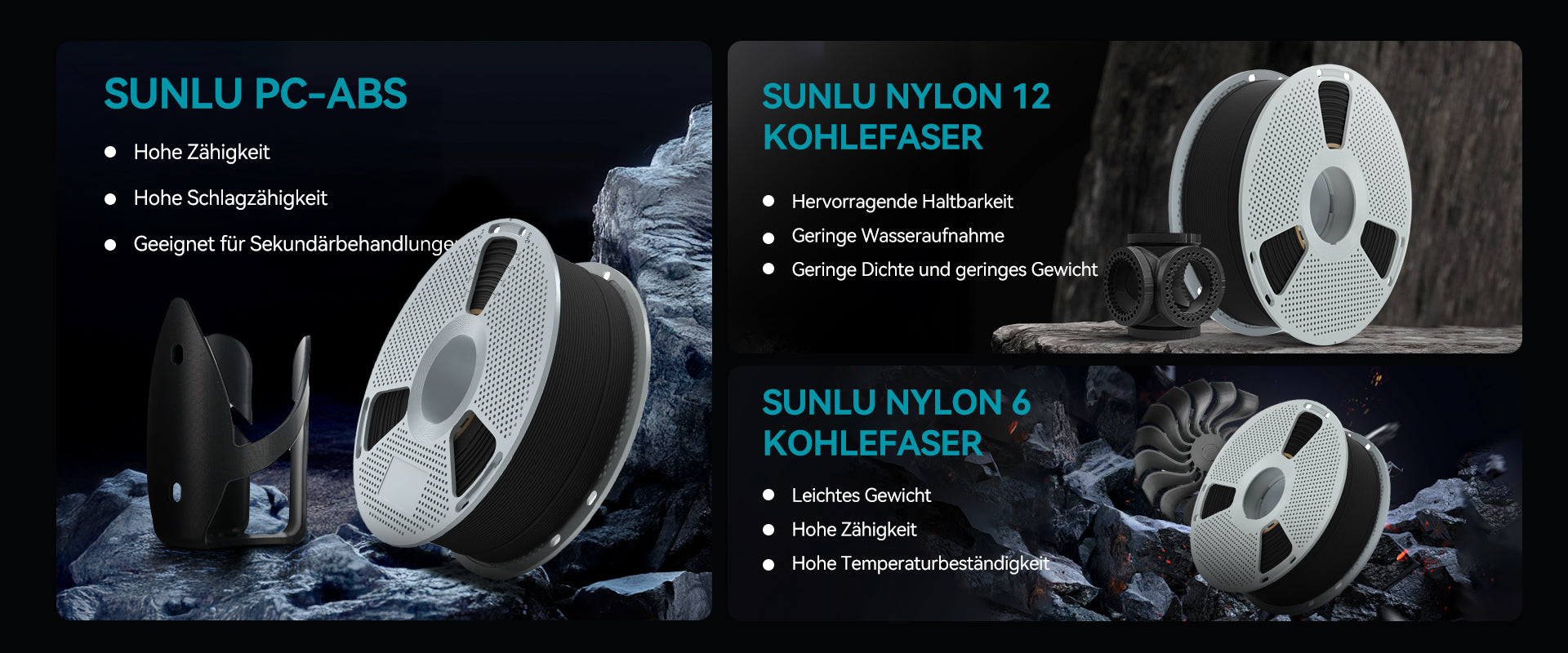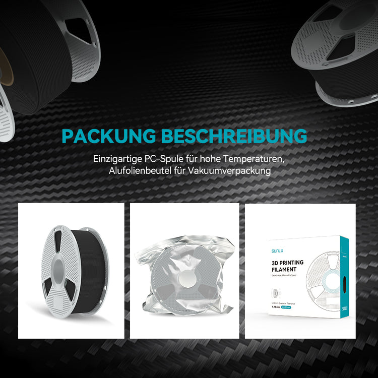 SUNLU PC-ABS-Filament ist im Vergleich zu einigen mit Kohlefaser gefüllten Materialien recht preisgünstig.