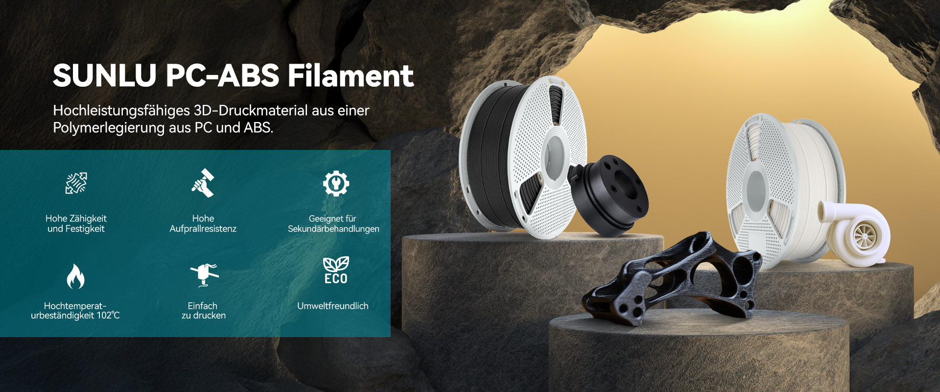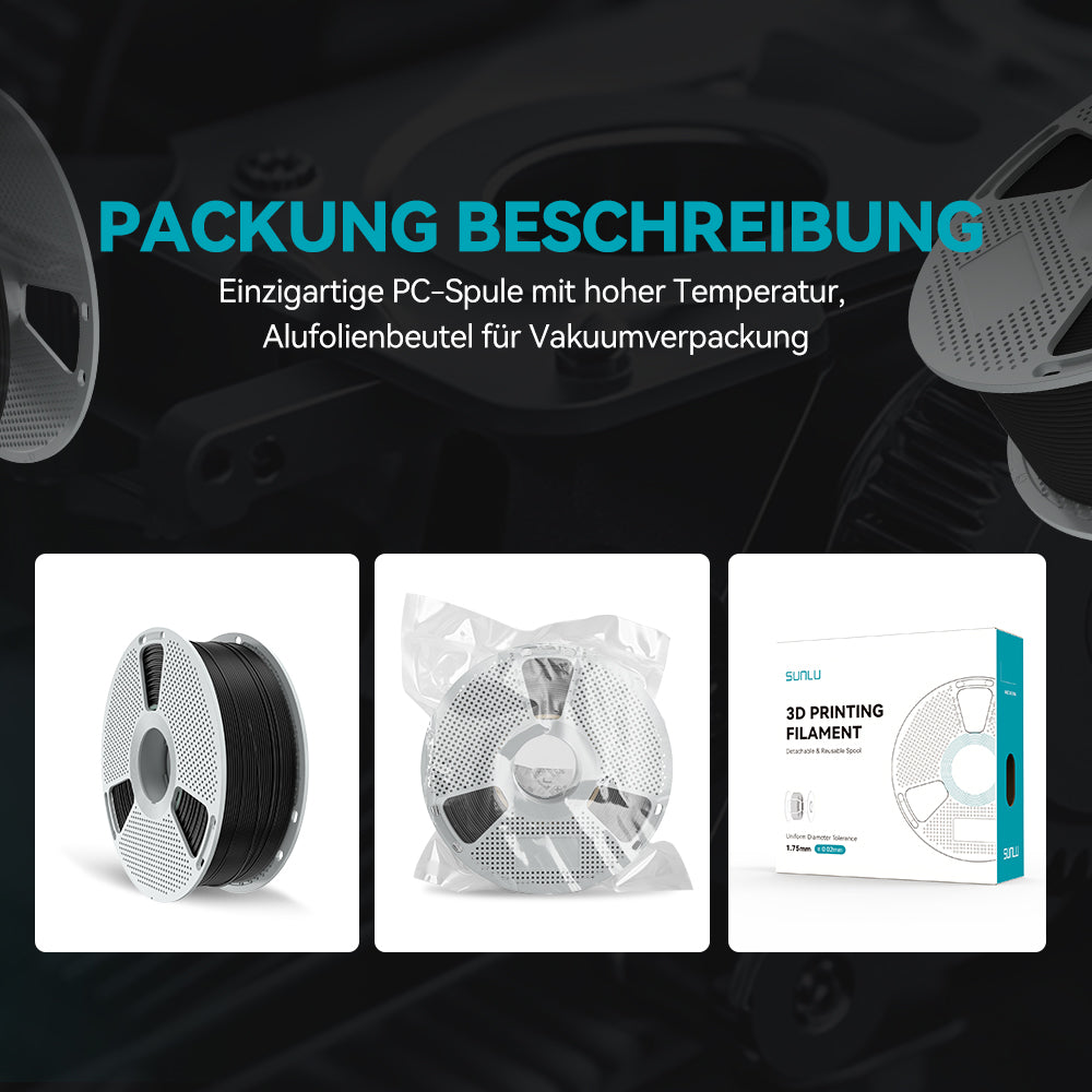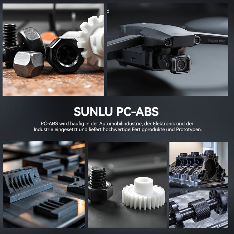 SUNLU PC-ABS-Filament ist ein leistungsstarkes 3D-Druckmaterial, das aus einer Polymerlegierung aus PC (Polycarbonat) und ABS (Acrylnitril-Butadien-Styrol) hergestellt wird. Durch die Kombination der hervorragenden Hitzebeständigkeit und Zähigkeit von PC mit den verbesserten Verarbeitungseigenschaften von ABS bleiben die gedruckten Teile auch bei hohen Temperaturen und Stößen stabil. Dieses Material bietet außerdem eine glatte Oberflächenbeschaffenheit und ist sehr gut mit Metallbeschichtungen kompatibel, wodurch es sich ideal für Anwendungen eignet, die sowohl Festigkeit als auch Ästhetik erfordern. PC-ABS wird häufig in der Automobil-, Elektronik- und Industriebranche eingesetzt und liefert hochwertige Endprodukte und Prototypen.