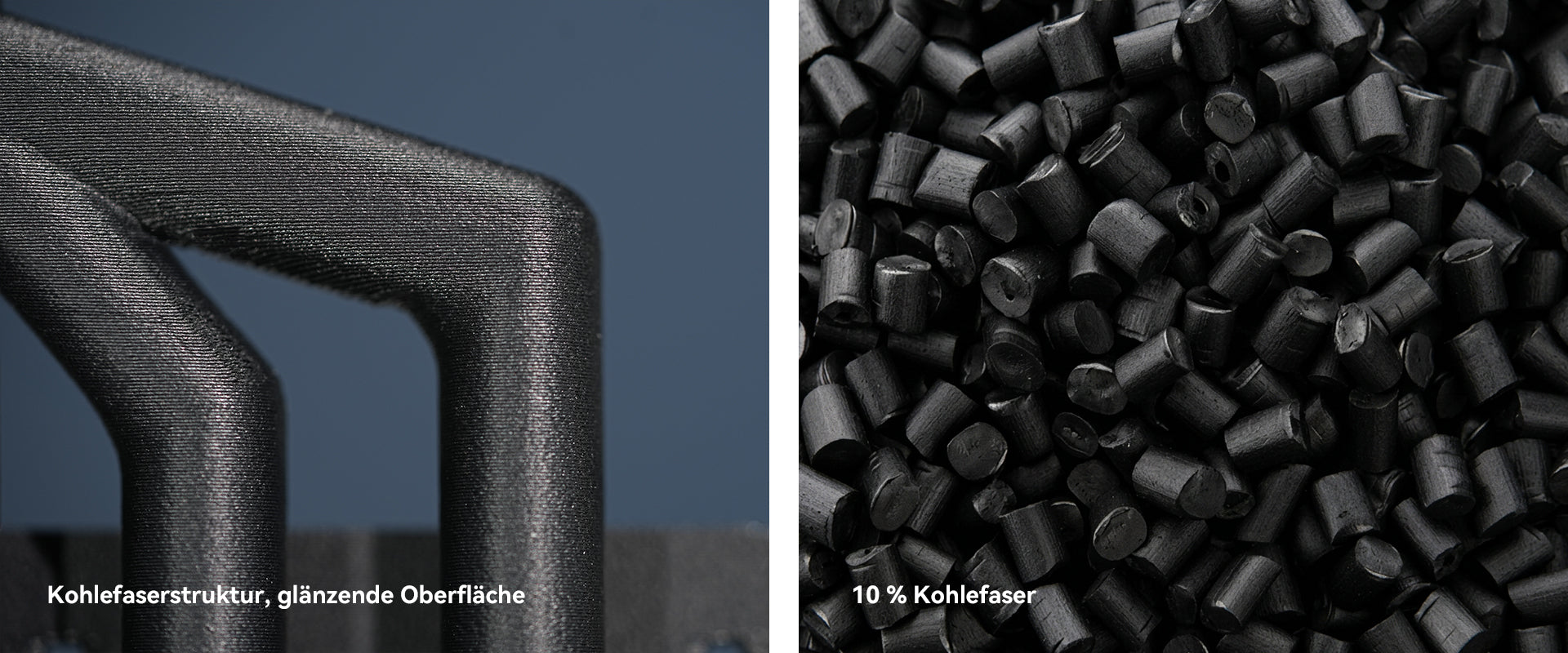 Kombiniert eine 10-prozentige Verstärkung mit Kohlefaser mit der Zähigkeit von PETG und bietet so hohe Festigkeit, Steifigkeit und Schlagzähigkeit für anspruchsvolle Funktionsteile. Mit seiner eleganten matten Oberfläche, seiner ausgezeichneten Dimensionsstabilität und seiner verbesserten Hitzebeständigkeit eignet es sich ideal für Anwendungen in der Industrie, Automobilbranche und Drohnen, bei denen es vor allem auf Leistung ankommt.