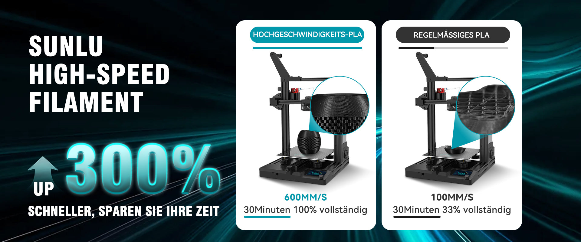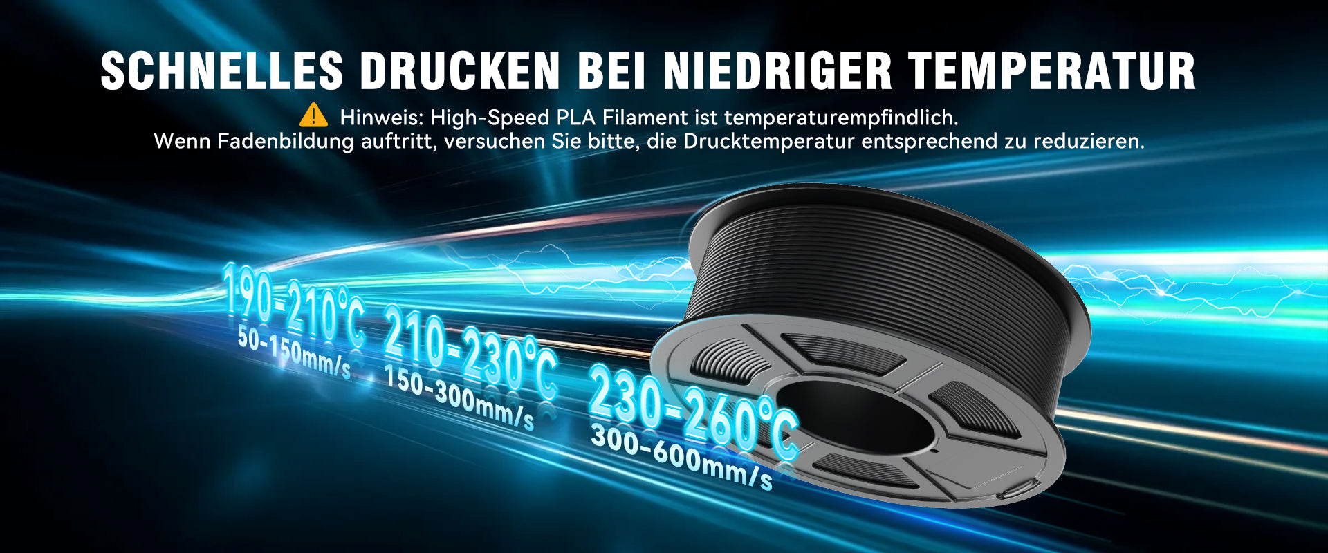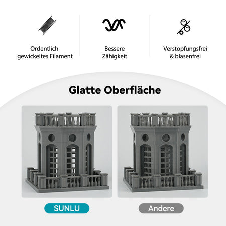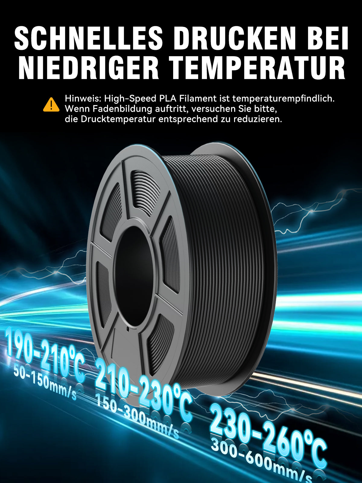 [Um die besten Druckergebnisse] mit SUNLU PLA-Filament zu erzielen, empfehlen wir eine Düsentemperatur von 200-230°C, eine Betttemperatur von 50-65°C und eine Druckgeschwindigkeit von 50-100mm/s.