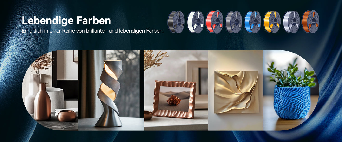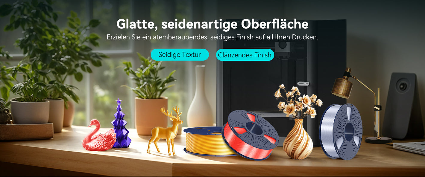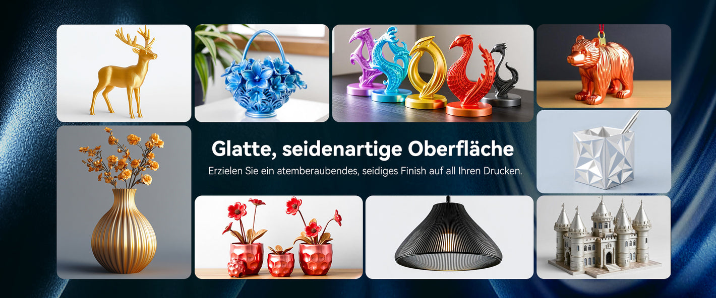 [SUNLU Shiny SILK PLA+ Filament] SUNLU SILK PLA PLUS Filament bietet eine atemberaubende, glänzende Oberfläche, die das Standard PLA PLUS in den Schatten stellt. Seine glatte, seidige Oberfläche muss nach dem Druck nicht mehr poliert werden, was es perfekt für künstlerische und handwerkliche Projekte macht. Dieses Filament verleiht jedem 3D-Druck einen luxuriösen Glanz, der Ihre Kreationen mit einem brillanten, seidenähnlichen Aussehen aufwertet.