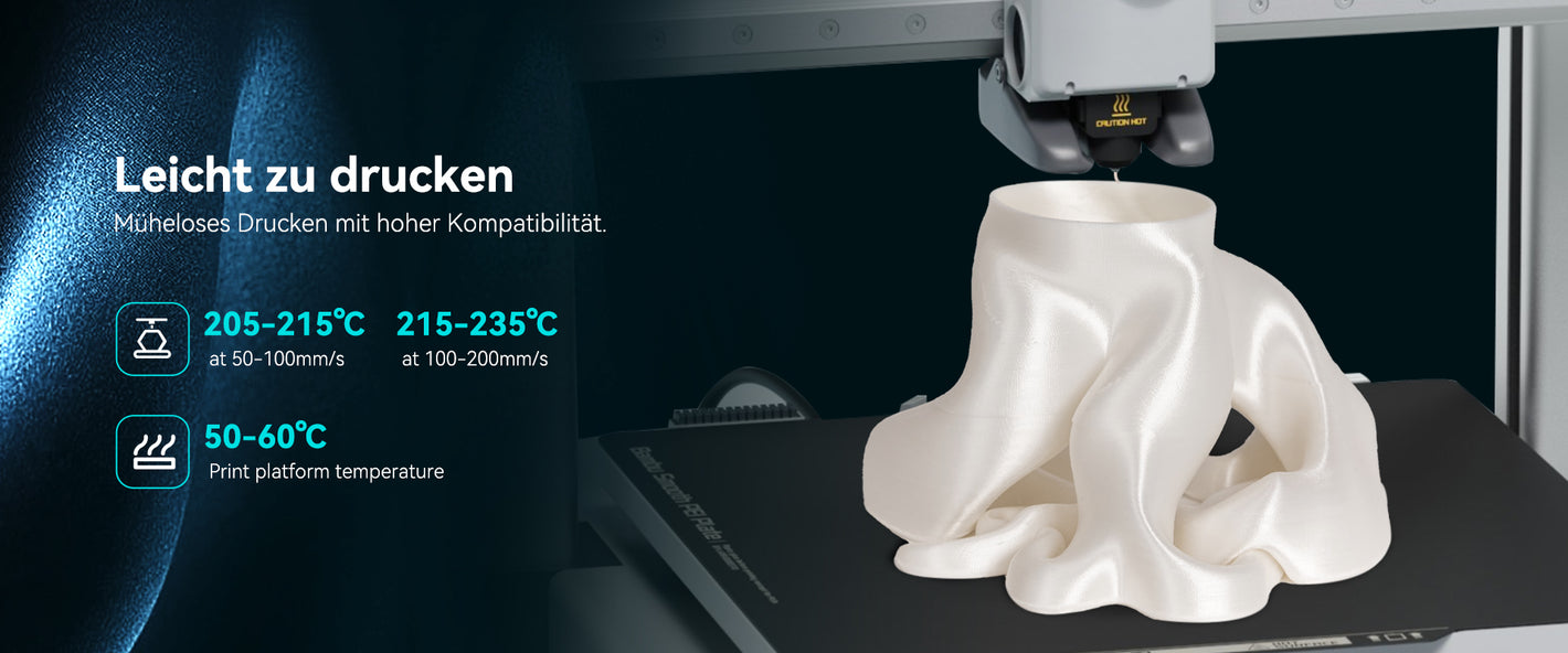 [Optimale Druckeinstellungen] SUNLU SILK PLA PLUS Filament ist für den einfachen 3D-Druck mit optimaler Qualität entwickelt worden. Es zeichnet sich durch hohe Reinheit, geringe Schrumpfung und hervorragende Zwischenschichthaftung aus und bietet eine hervorragende Leistung. Empfohlene Drucktemperaturen sind 205-215℃ bei 50-100mm/s und 215-235℃ bei 100-200mm/s, mit einer Heizbetttemperatur von 50-60°C.