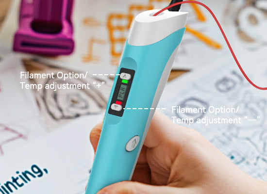 Dieser 3D-Druckstift ist sowohl mit PLA- als auch mit ABS-Filamenten (1,75±0,02 mm) kompatibel. Wechseln Sie mühelos zwischen verschiedenen Materialien, indem Sie mit einem Druck das Material wechseln, um verschiedene kreative Projekte zu realisieren. Empfohlene Temperatureinstellungen sind ABS: 180-210℃, und PLA: 160-180℃.