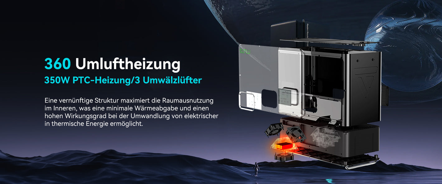 【Rapid heating】Built-in 350W PTC Heizung, Heizung zu 50℃ in 30mins, schneller und effizienter.