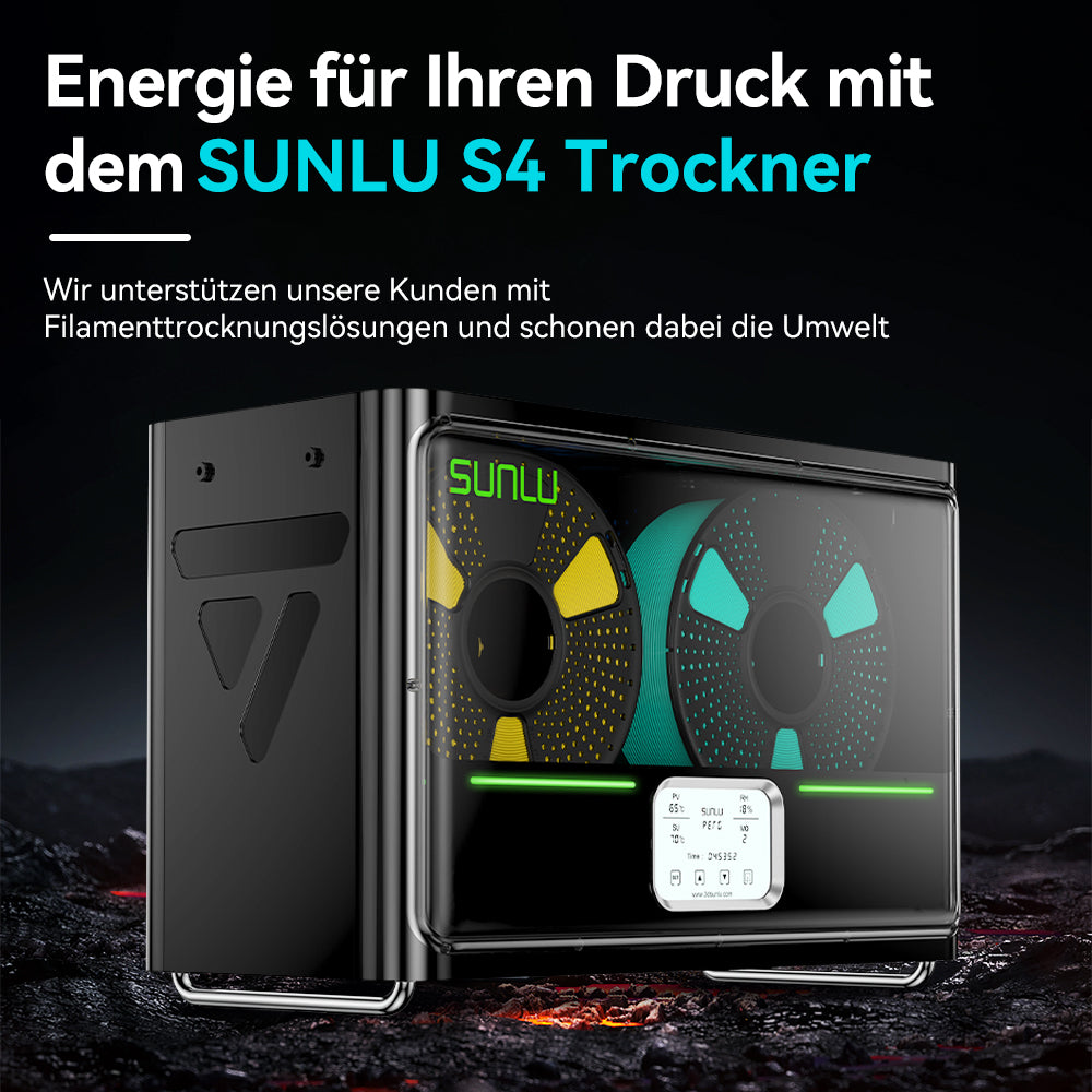 Mit der Weiterentwicklung der 3D-Drucktechnologie haben wir erkannt, dass sich die Anforderungen der Anwender an den 3D-Druck-Filamenttrockner ändern. Als Antwort darauf stellen wir stolz den brandneuen SUNLU FilaDryer S4 vor.