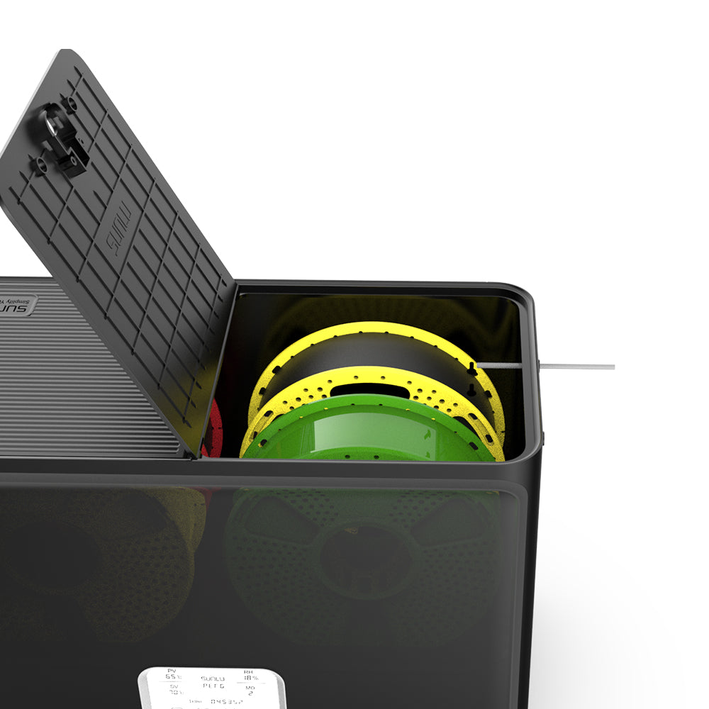 Der SUNLU FilaDryer S4 hat eine Größe von 458mm*218mm*312mm. Er fasst bis zu 4 Rollen mit 1kg Filament. Außerdem ist er mit acht Filamentlöchern und PTFE-Schläuchen ausgestattet, die den Anforderungen der Benutzer an das Trocknen mehrerer Filamente und das gleichzeitige Drucken mit mehreren Druckern entsprechen.