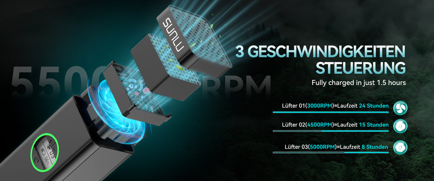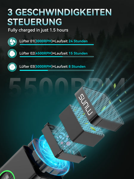 [Einstellbare Stufen] Stellen Sie 3 Lüfterstufen ein, die Geschwindigkeit entspricht jeweils 3000RPM/4500RPM/5500RPM, je nach verschiedenen Szenarien, flexibler eingestellt;