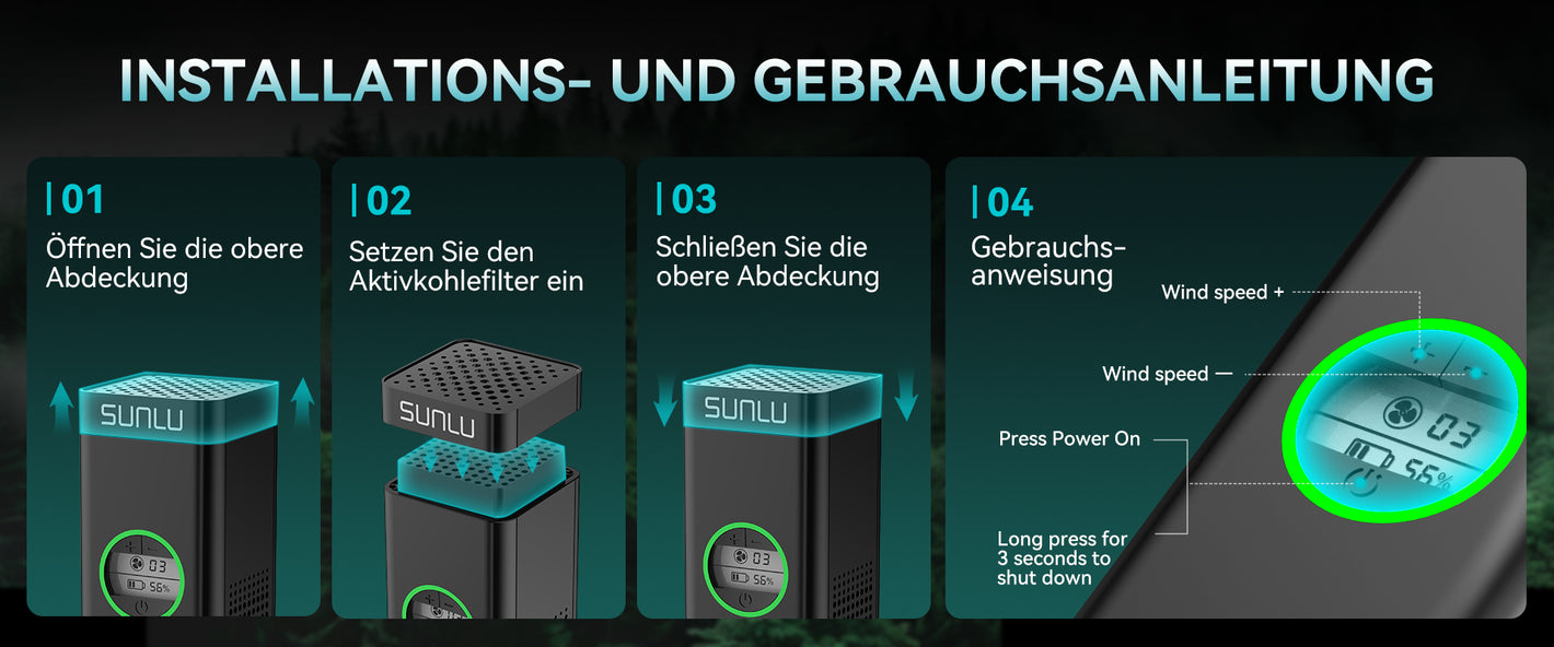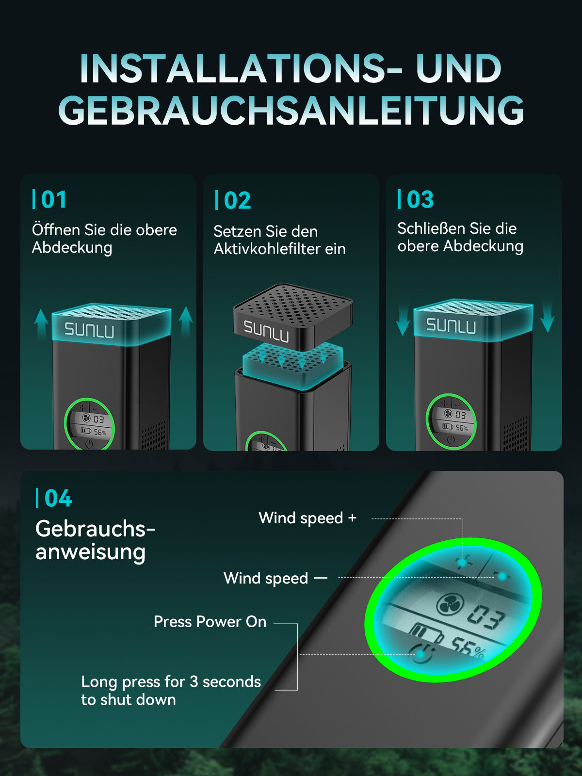 Der Luftreiniger saugt die Luft mit Hilfe eines Gebläses an und leitet sie durch Filter, die Feinstaub abfangen. Bei den Filtern handelt es sich um Aktivkohlefilter für Gerüche. Die gereinigte Luft wird dann zurück in den Raum geleitet.