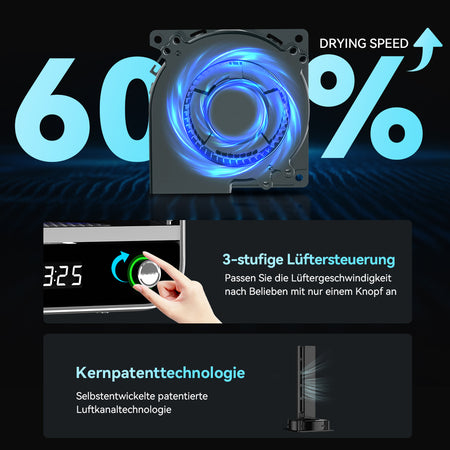 [Schnelle Lufttrocknung] Selbst entwickelte, patentierte Luftkanaltechnologie, verglichen mit der natürlichen Lufttrocknung, Modelllufttrocknungszeit bis zu 60%, Lufttrocknung schneller, effizienter.