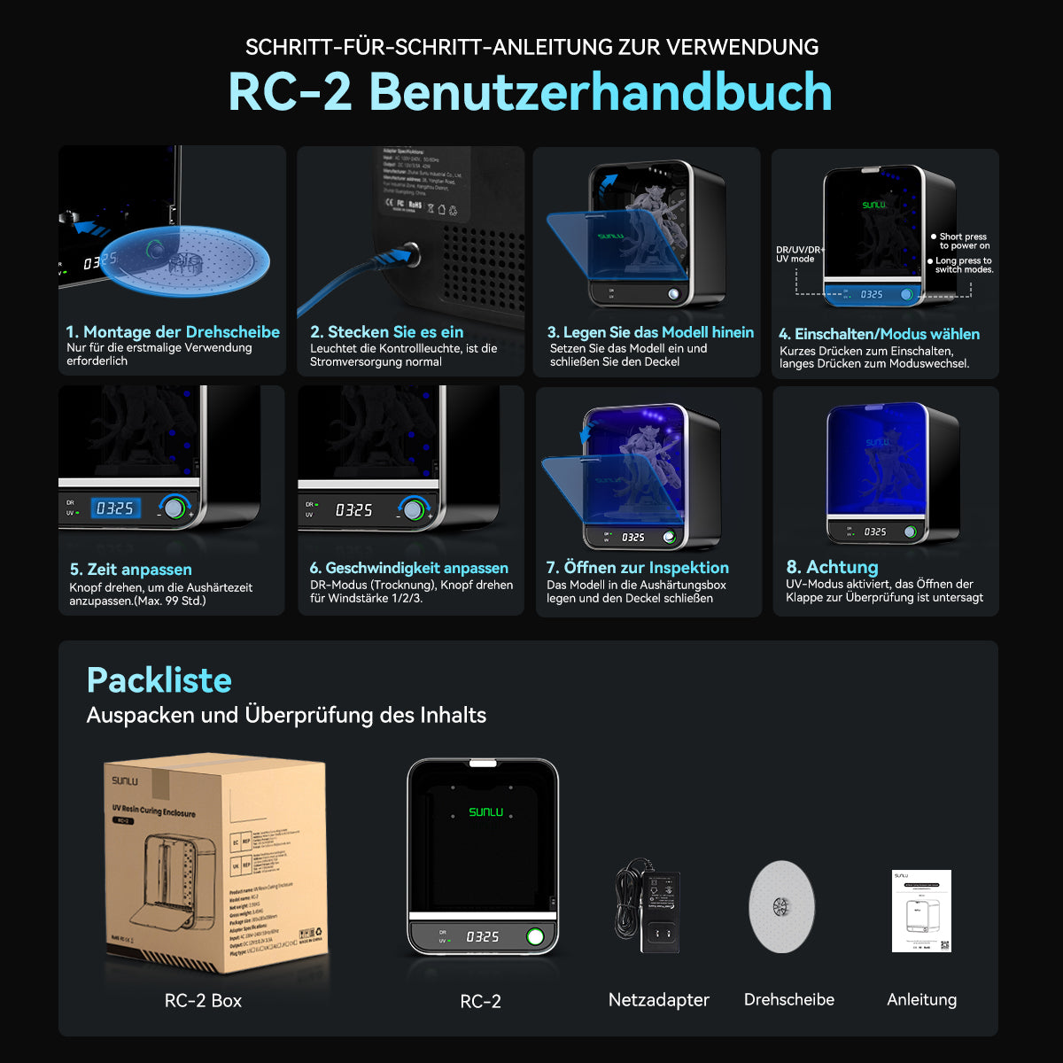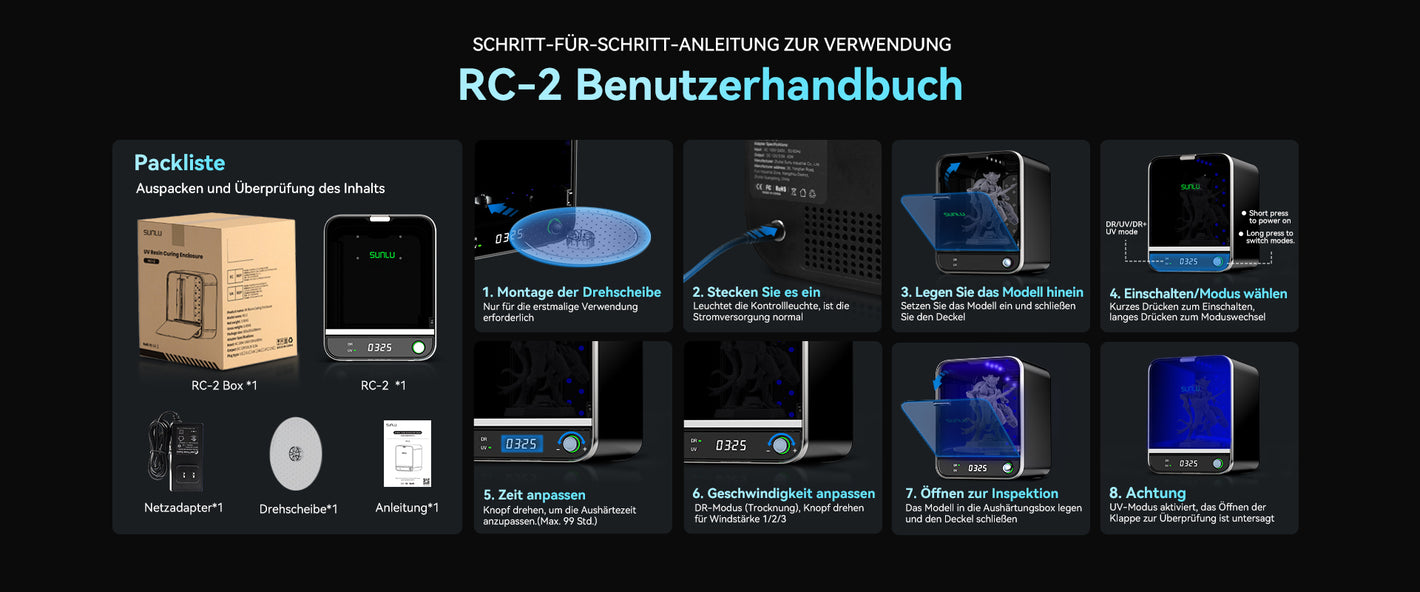 [360° Curing Surround] 20 UV-Lampen Surround-Design (4 an der Spitze, 4 an der Unterseite, 12 an der Seite), jedes Detail wird gleichmäßig bestrahlt, 360 ° verfeinern die Schönheit des Modells.